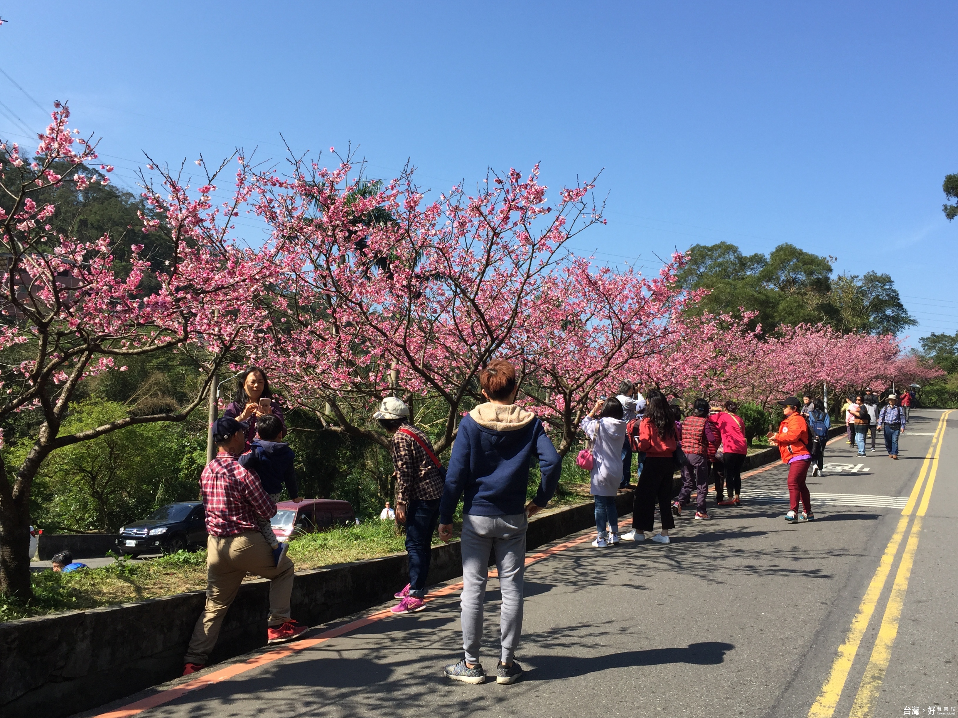 花園新城櫻花盛開 賞花人潮絡繹不絕
